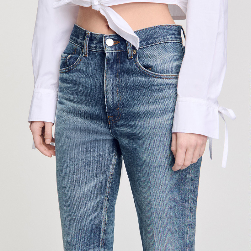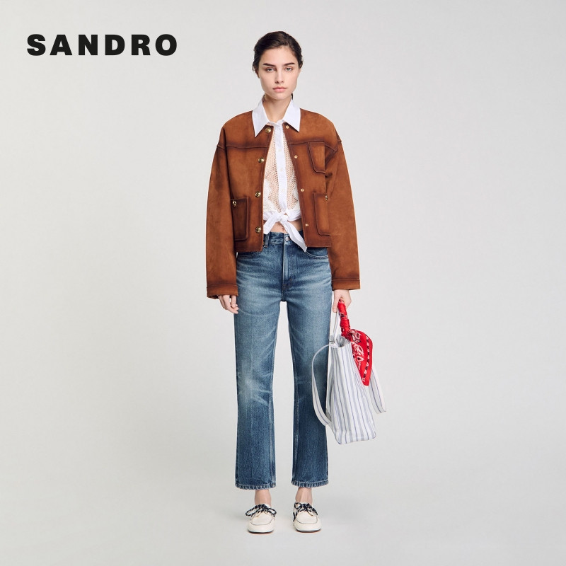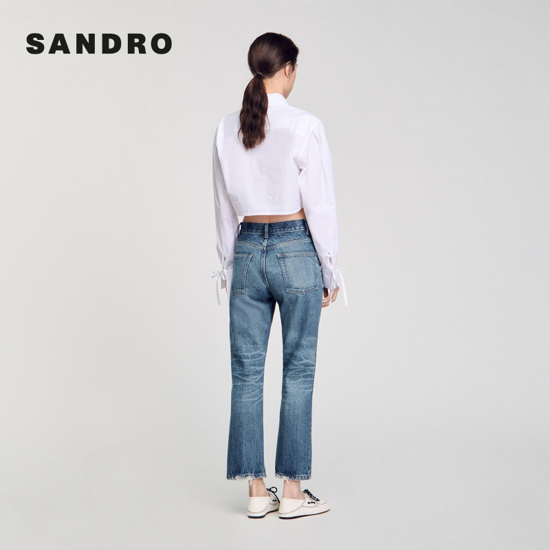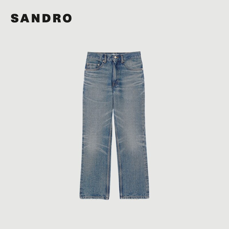 末7折SANDRO2025秋冬经典 牛仔裤 款 做旧棉质蓝色直筒九分裤 女装 季
