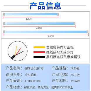 日行灯流水转向灯启动扫描超亮眉灯汽车装 通用导光条led灯 饰改装