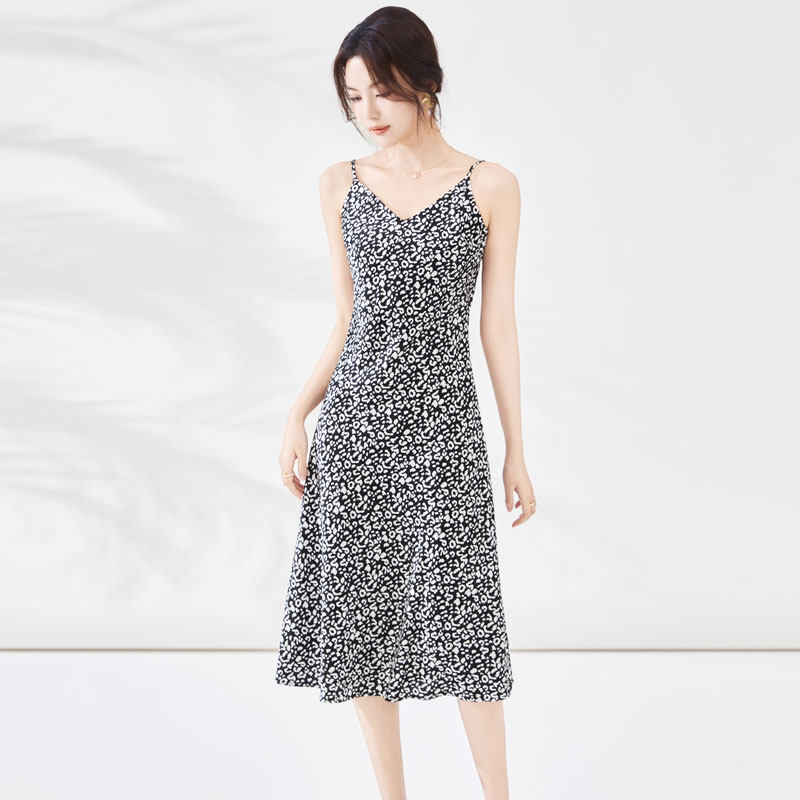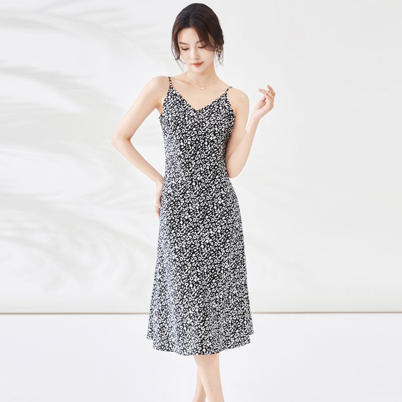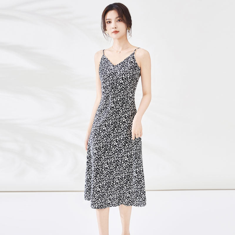 迪奥碎花连衣裙女26新款 醋酸印花吊带连衣裙轻奢缎面夏天裙子 法式