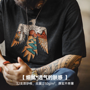 男夏季 复古印第安雷鸟T恤棉重磅民族风刺绣印花短袖 美式 马登工装