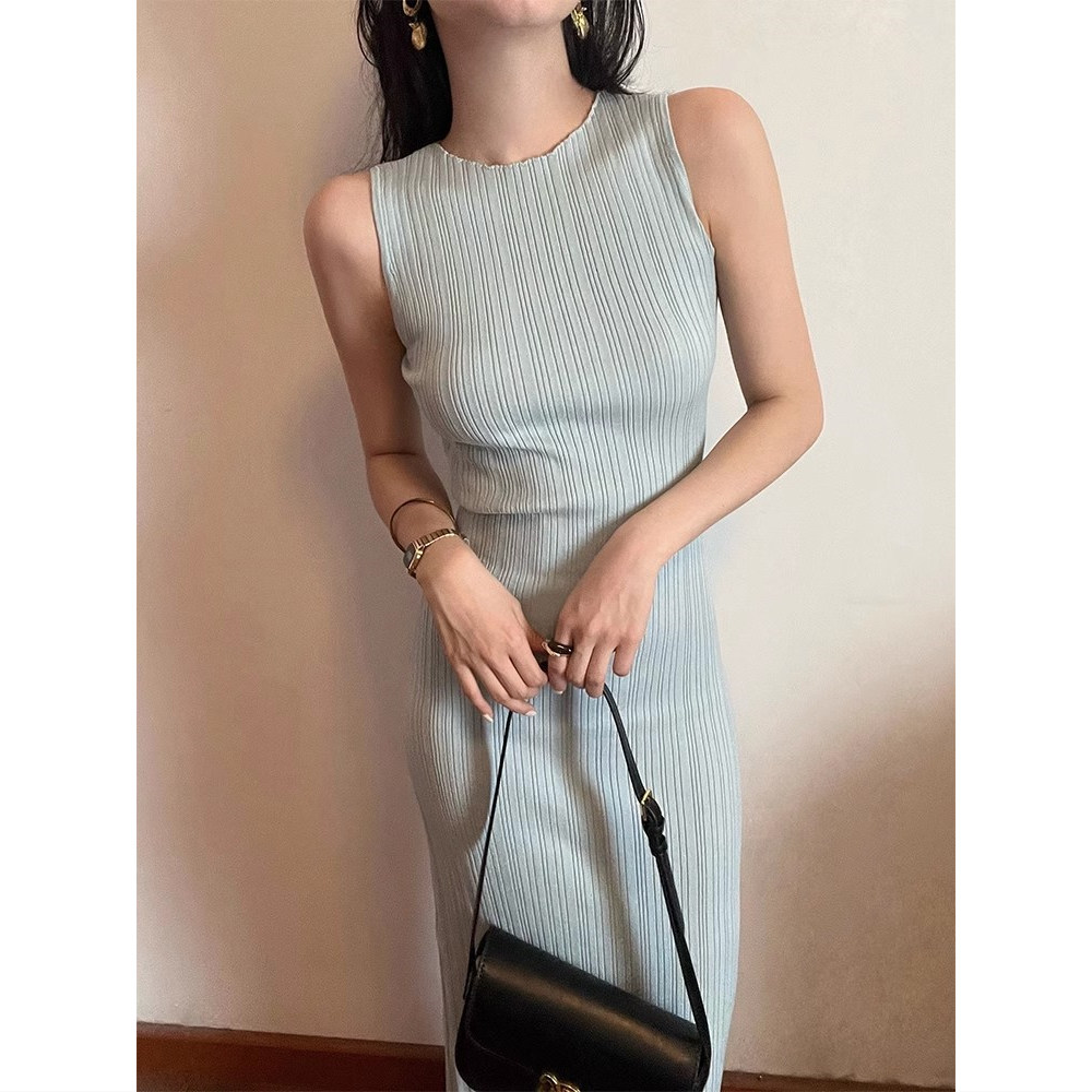 开叉长裙显身材收腰包臀裙子 修身 御姐风气质无袖 背心连衣裙女夏季