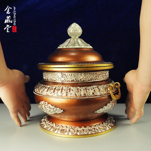 藏式 糌粑盒炒面盒糖果干货收纳盒罐子合金复古家居民族风复古摆件