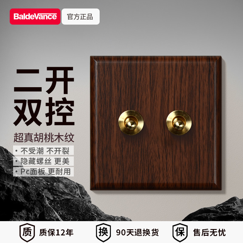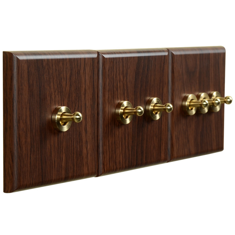 中古风木纹拨杆复古开关插座面板86型墙壁单联一开双控灯酒店开关