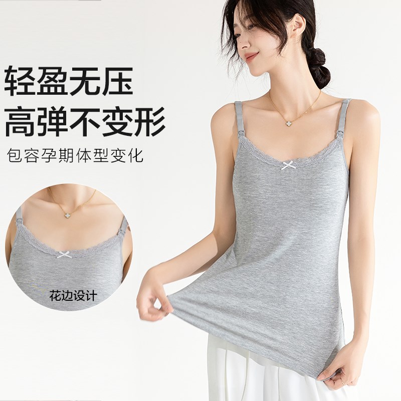 孕妇哺乳蕾丝背心吊带夏季 免穿文胸产后喂奶衣家居服月子服 薄款