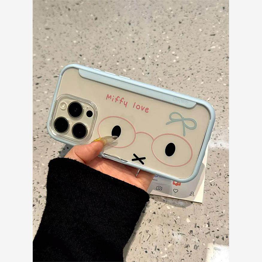 Hinlucky 14亚克力13防摔保护套15超好看ins 卡通可爱眼镜米菲兔翻盖支架适用苹果16手机壳iphone15promax新款