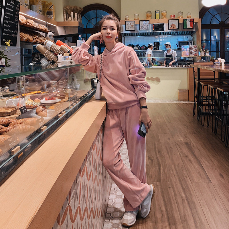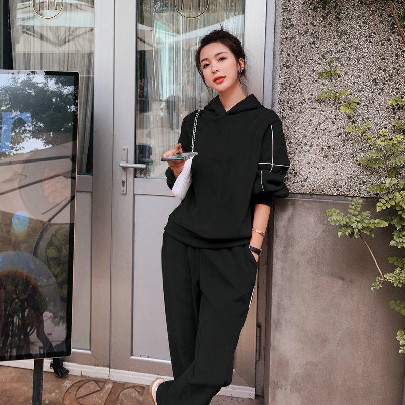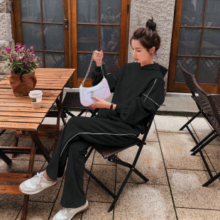 新款 两件套百搭街头套装 女装 连帽卫衣休闲裤 女 时尚 2021早秋季