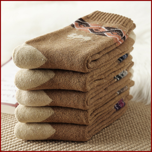 毛袜保暖袜长辈老人棉袜加厚驼色 5双骆驼加绒袜子男女加厚冬款
