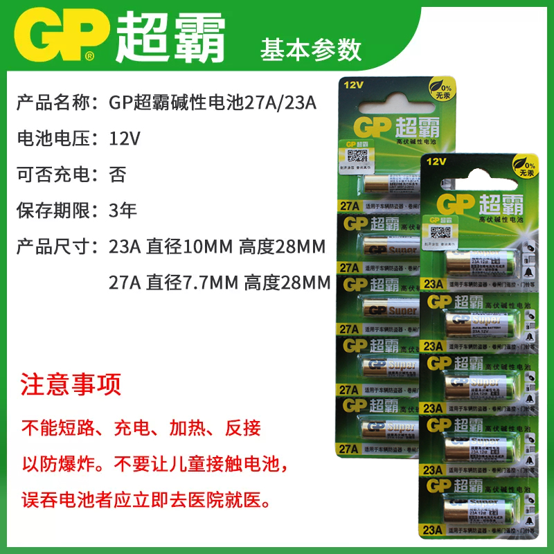 门铃 12V碱性电池12伏 卷闸门 车库遥控防盗器引闪器电池A23S小号电池干电池a27s 10粒批发 GP超霸23A 包邮 27A