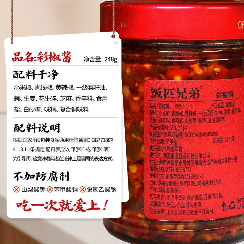 干饭兄弟湘集1 号鲜椒酱下饭菜辣椒酱湖南特产蒜蓉拌面饭剁彩椒酱