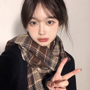 星月豚骨秋冬季 仿羊绒格子保暖情侣百搭韩系学生小众礼物JK围巾女