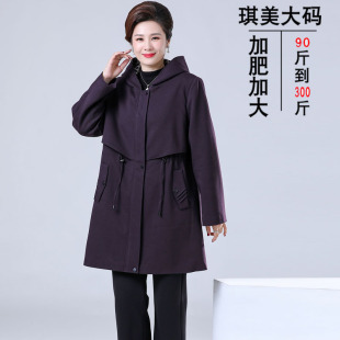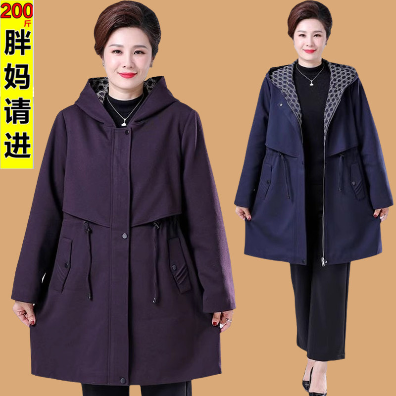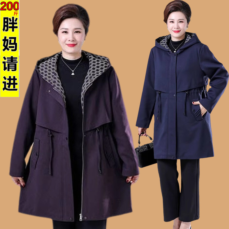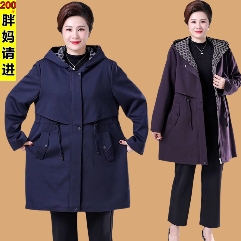 洋气时尚 200斤中老年人女装 胖妈妈风衣外套春秋装 特体加肥加大码