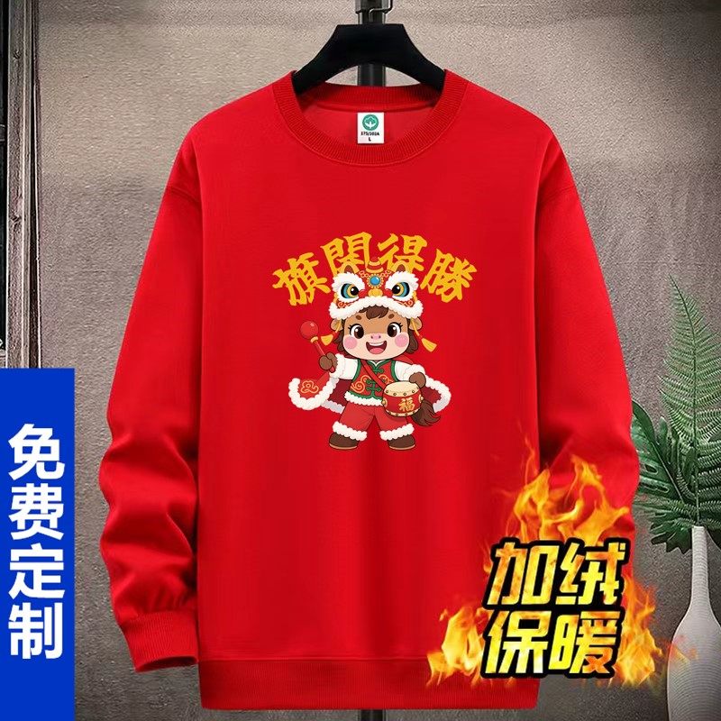 2026马年本命年卫衣加绒红色秋冬情侣装 新年衣服生肖定制保险年会