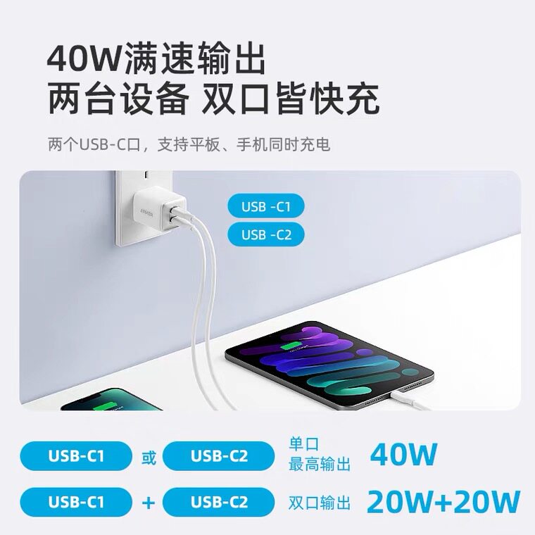 Anker安克安芯充40W双口快充适用于苹果iPhone17proMax 16快充头手机充电器通用