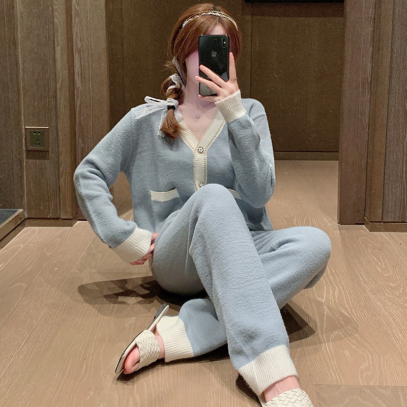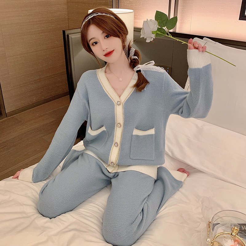 日本网红风软绵绵珊瑚绒睡衣女秋冬季 两件套 可外穿保暖家居服套装
