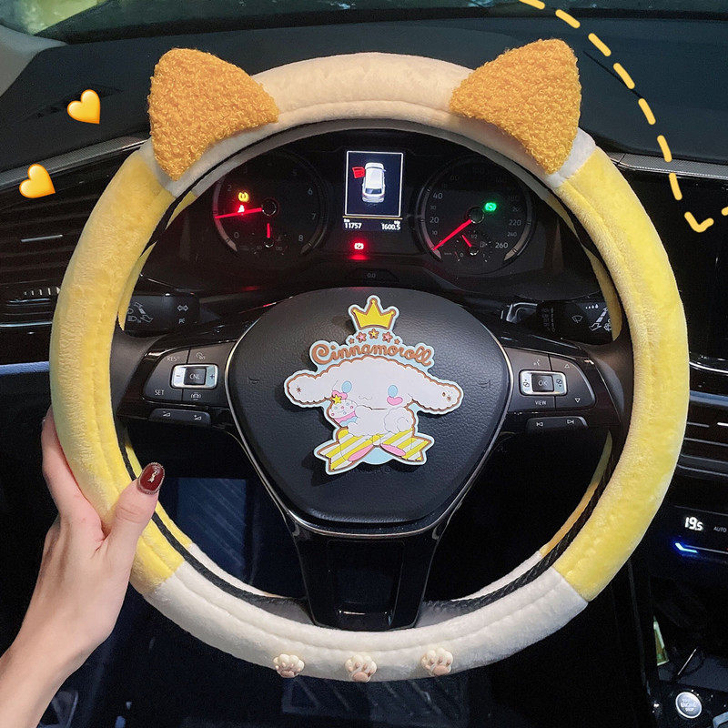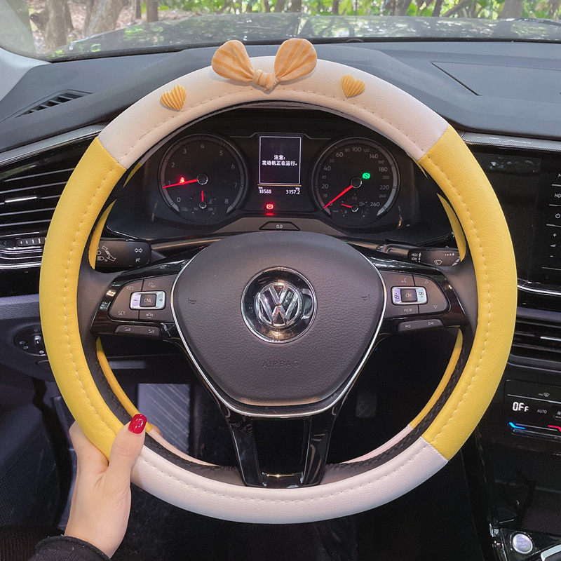 饰汽车把套 通用装 韩国耳朵可爱方向盘套女款 夏天皮质卡通防滑四季