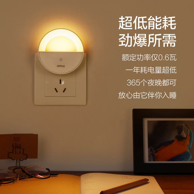 欧普感应led小夜灯usb充电床头母婴夜光灯过道卧室台灯应急灯礼物