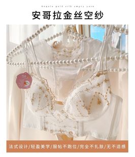 好奇蜜斯小胸聚拢内衣女薄显大无钢圈蕾丝文胸罩套装 防下垂夏 法式