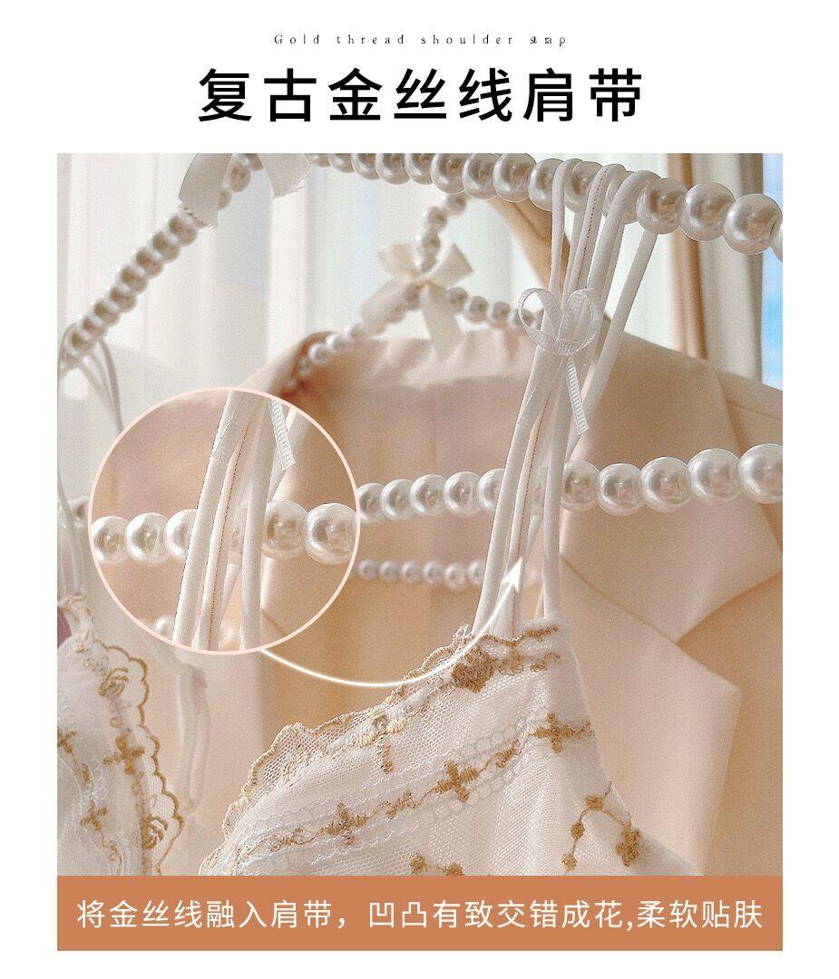好奇蜜斯蕾丝法式 白三角杯小胸 内衣女美背性感夏薄纯欲文胸罩套装