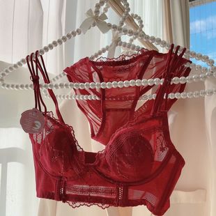 好奇蜜斯红内衣裤 结婚新娘 女本命年小胸聚拢蕾丝性感文胸罩套装