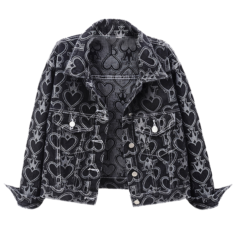 宽松韩版 爱心印花牛仔外套女短款 百搭夹克上衣短外套 新款 2025春季