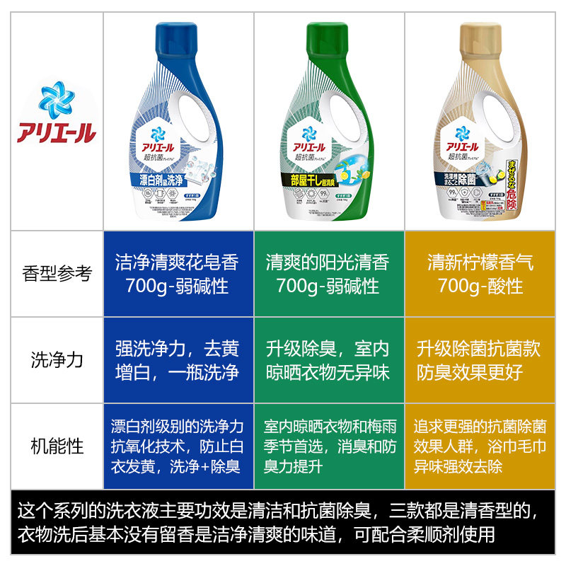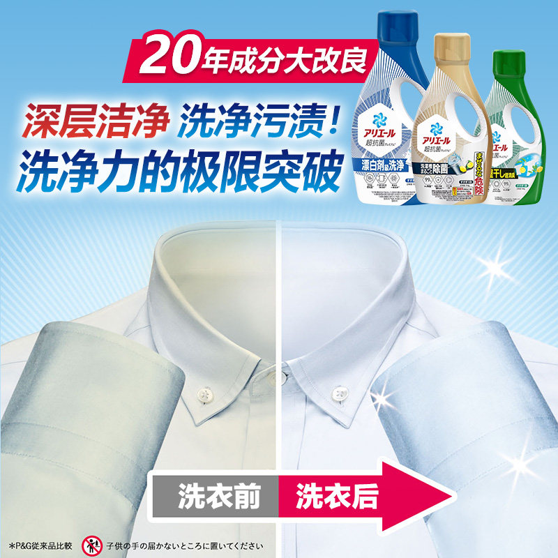 日本进口宝洁碧浪洗衣液深层除菌除臭强力去污护色室内晾晒720g