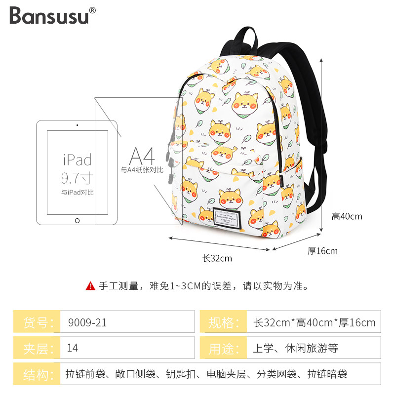 Bansusu.狗子卡通双肩包2026款 男女书包女高中大学生旅行包大容量