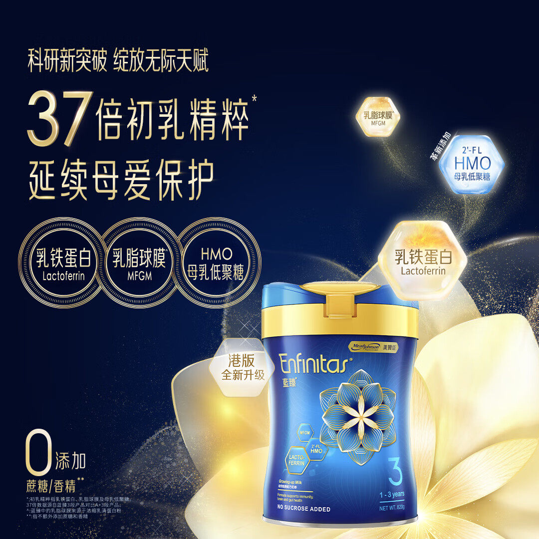 6罐荷兰0蔗糖6 蓝臻婴幼儿奶粉2段820g 美赞臣港版 12个月 自营