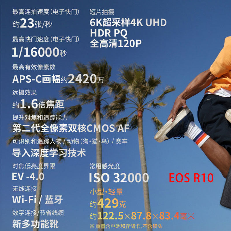 CANON C半画幅微单相机4K短视频轻便青春版 EOS APS 微单 R10 佳能