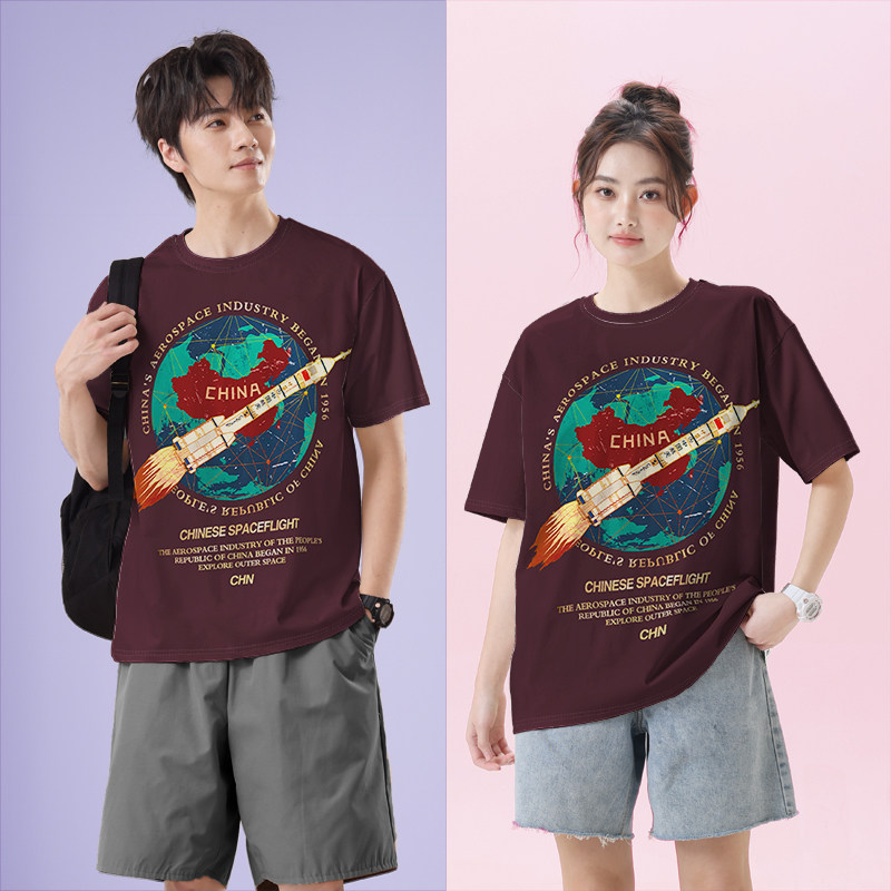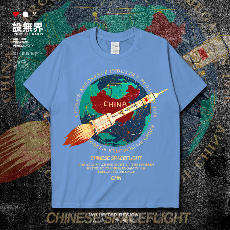 无界 0015设 中国航天十二飞船火箭地球短袖 T恤男女潮体恤夏装