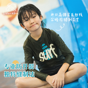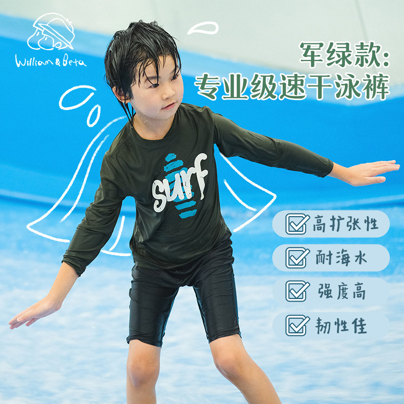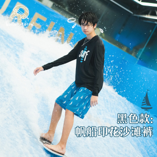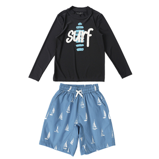 专业速干高弹帆船印花半高领儿童成人泳衣套装 小新和贝塔 亲子款