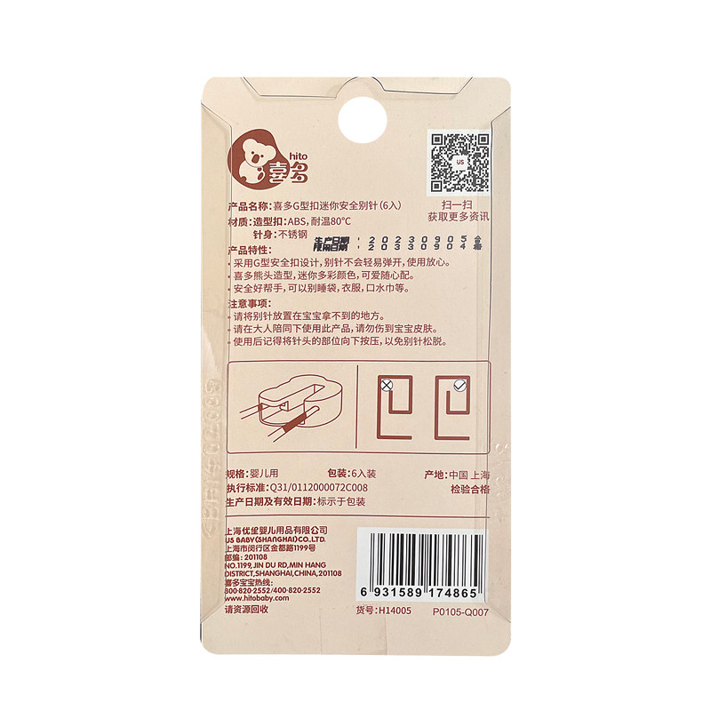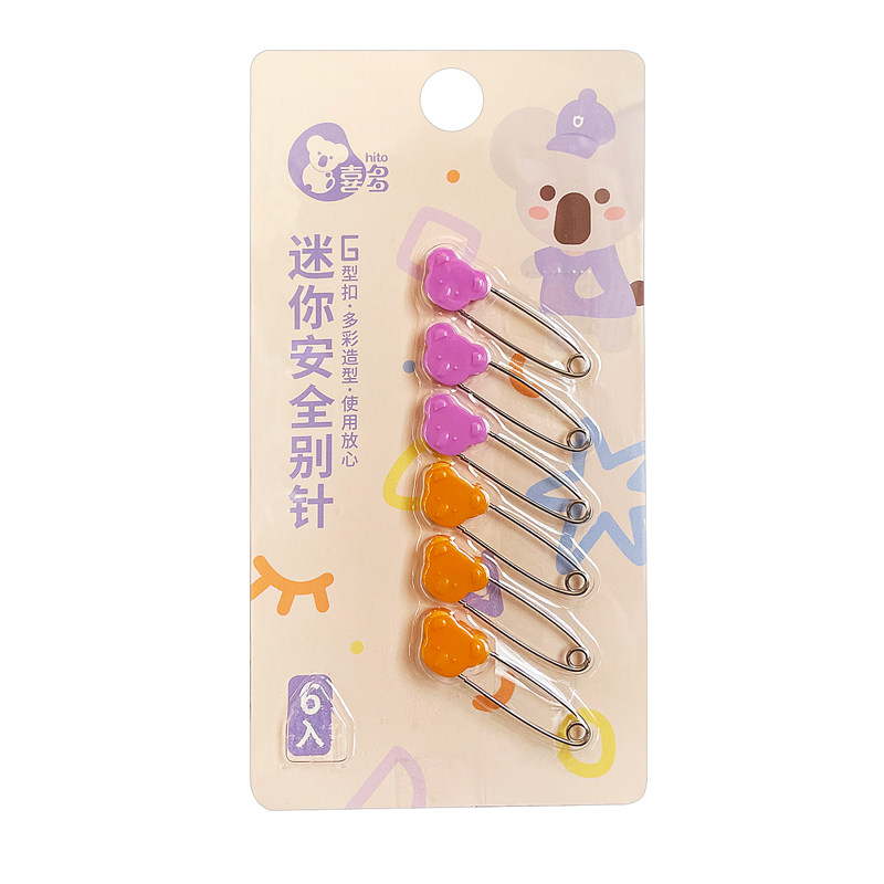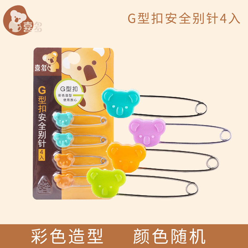 随机发货 防回弹口水巾固定针6入卡装 喜多 mini婴儿G型扣安全别针
