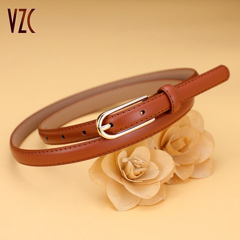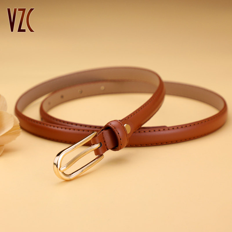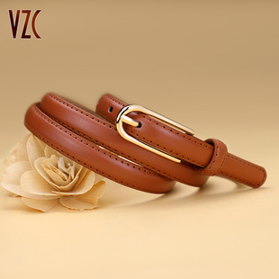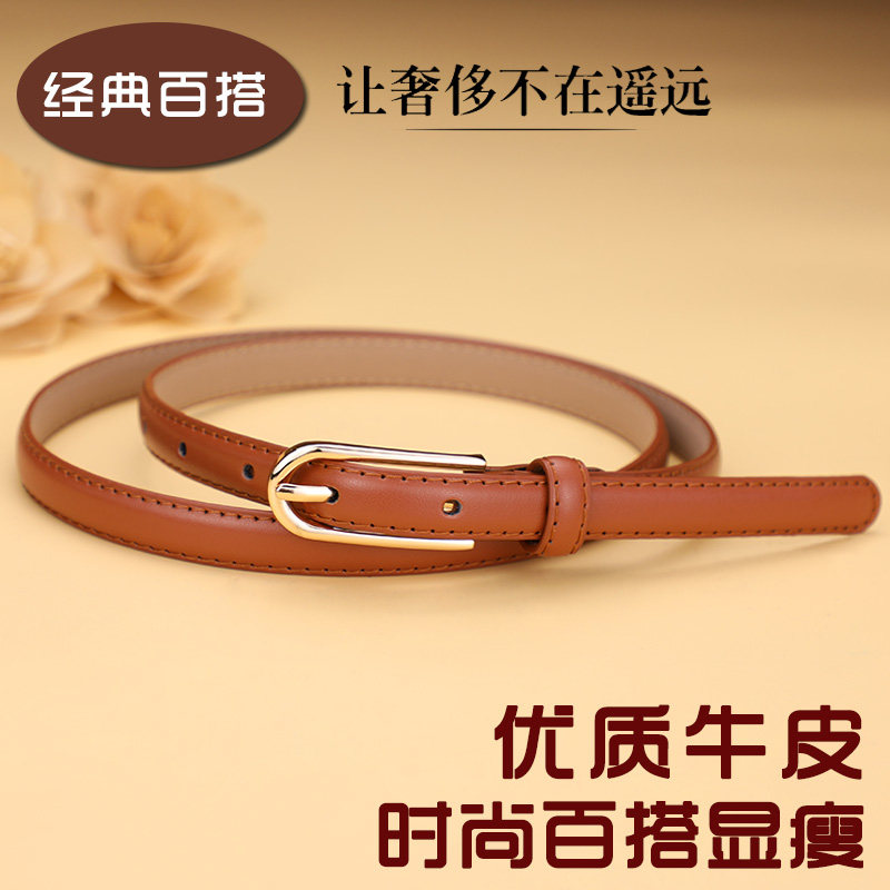 带 饰配连衣裙青年牛仔裤 皮带女真皮牛皮棕色细腰带简约百搭时尚 装