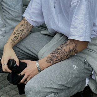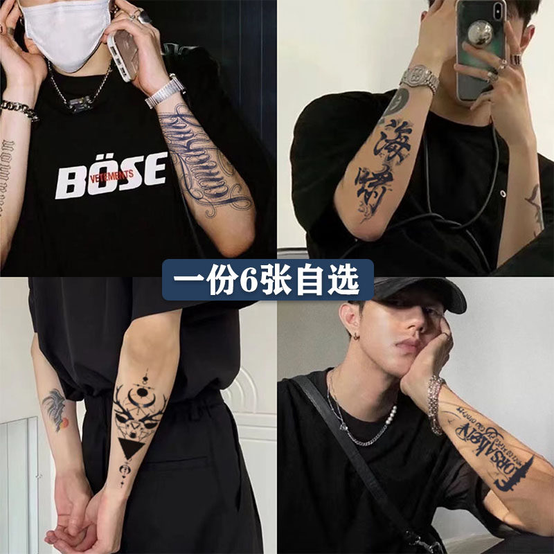 花臂果汁纹身贴渐变洗不掉不反光草本纹身贴防水持久仿真果汁纹身