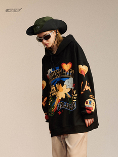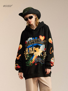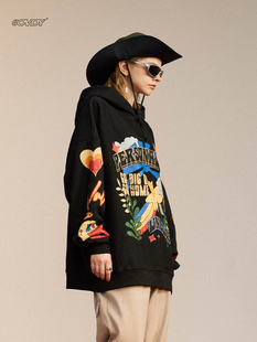 慵懒风外套 爆款 美式 高街hiphop国潮牌满印字母卫衣春秋冬2025新款