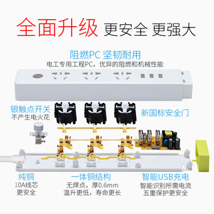 智能排插USB插座板家用电源多功能开关插排接线板插板带长线1.8米