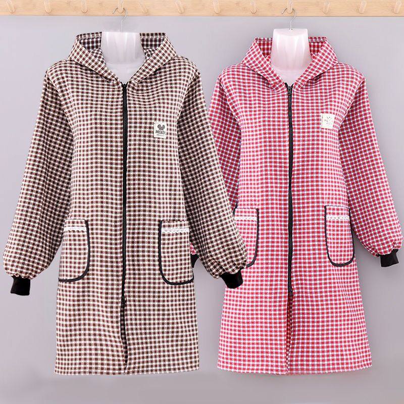 围裙家用厨房外穿工作服定制围腰 防水长袖 罩衣女新款 加绒加厚冬季