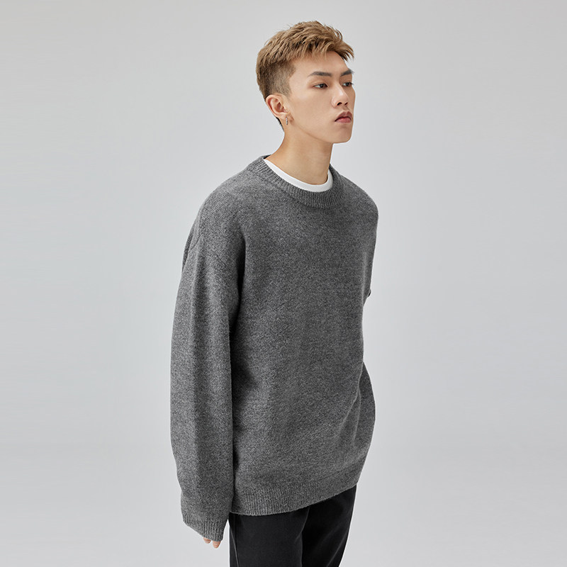 潮牌宽松休闲针织衫 CHINISM 美式 圆领毛衣男秋季 CH纯色简约基础款