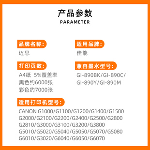 G5040 890黑色彩色 G3100 G5080打印机GI G5070 G5050 G5020 G3800墨水G5010 G3200 G3020 迈思适用佳能G3000