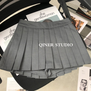 欧美ins街头纯欲风显瘦百搭垂感A字高腰带底裤 裙百褶裙女短裙 西装