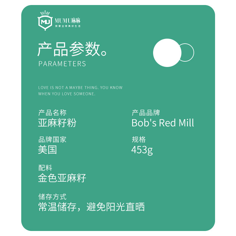 Red Mill进口黄金亚麻籽粉鲍勃红磨坊无麸即食熟 美国Bob 现货