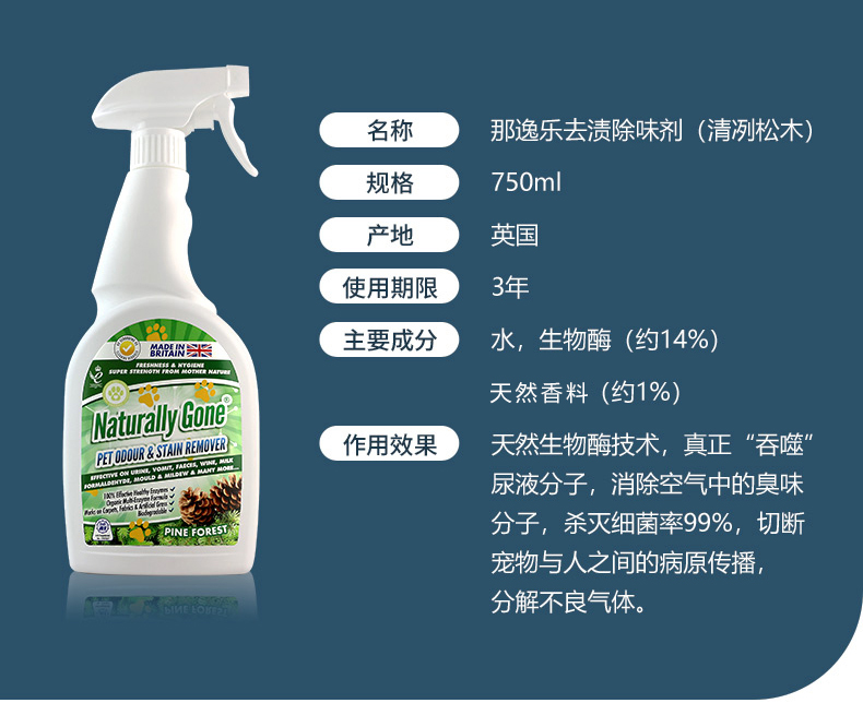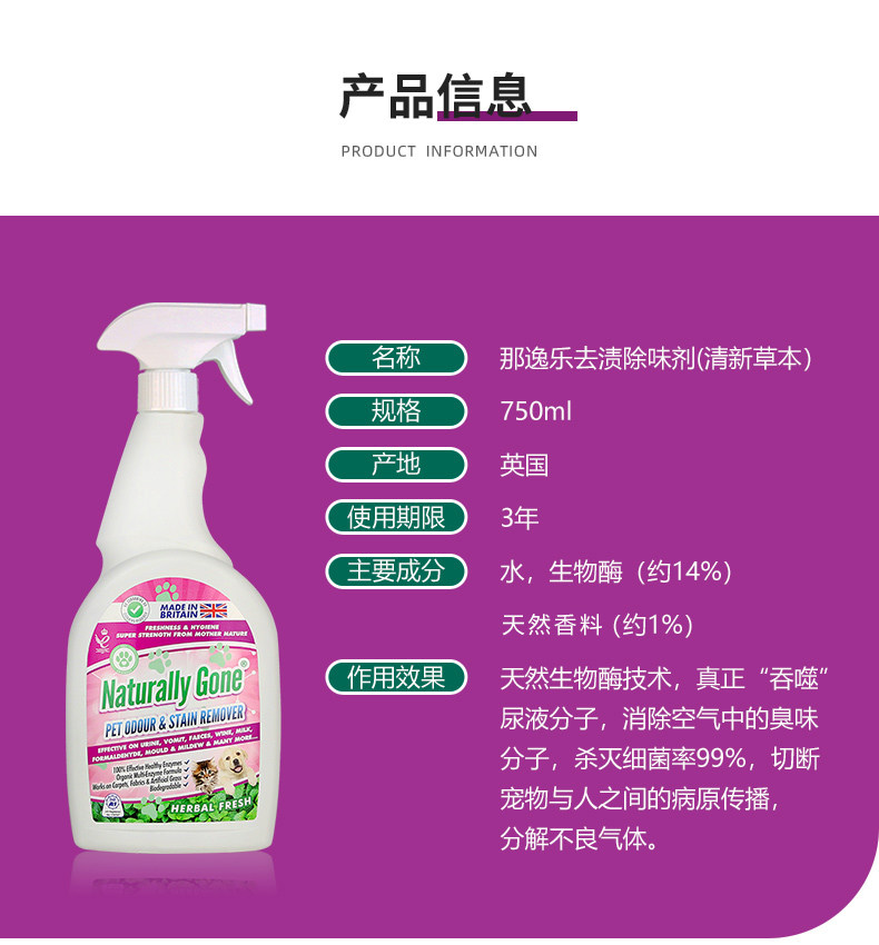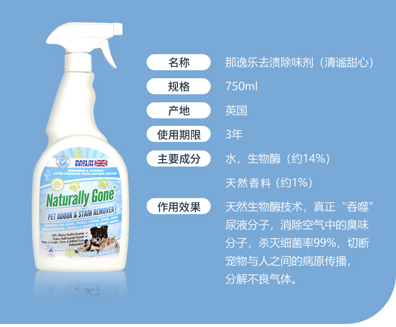 那逸乐宠物除味剂750ML去尿味清新狗猫砂喷雾生物酶猫尿除臭剂