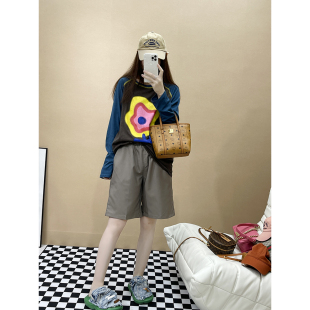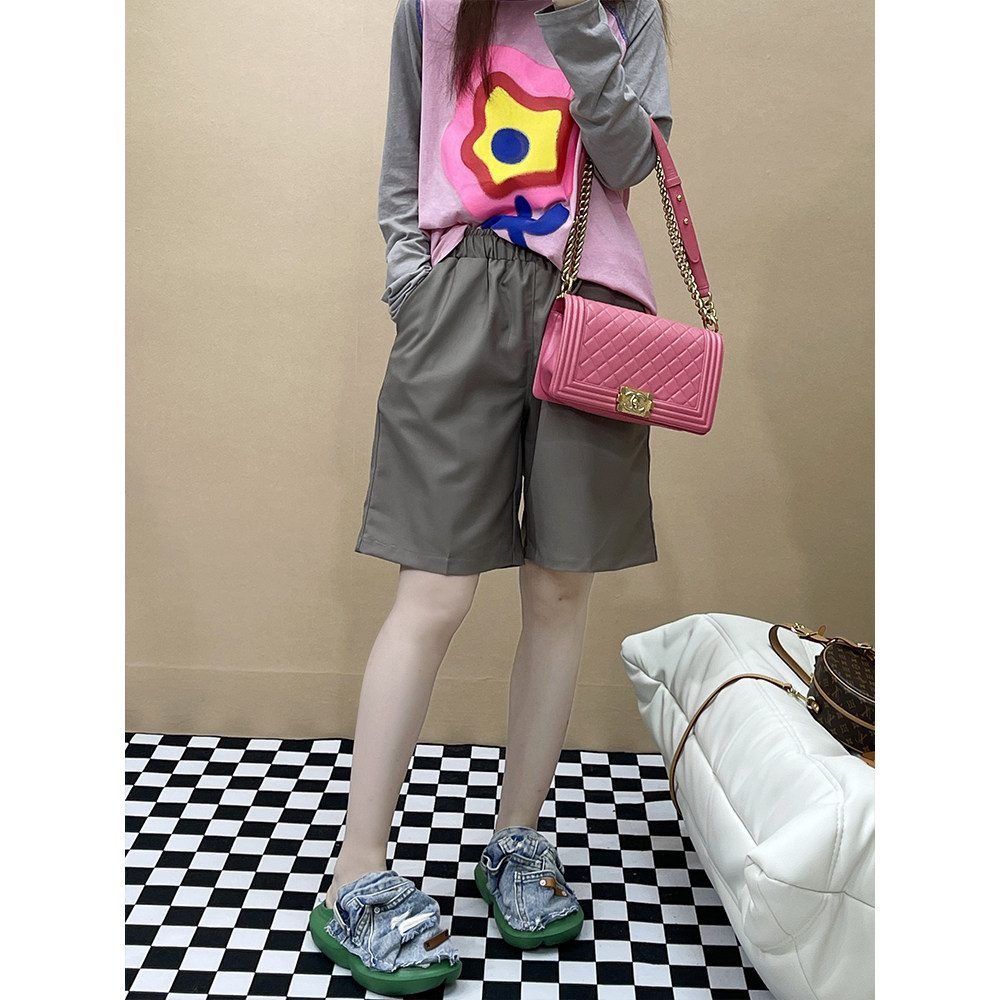 灰色短裤 高腰显瘦休闲宽松直筒裤 女夏季 新款 子 薄款 superxue