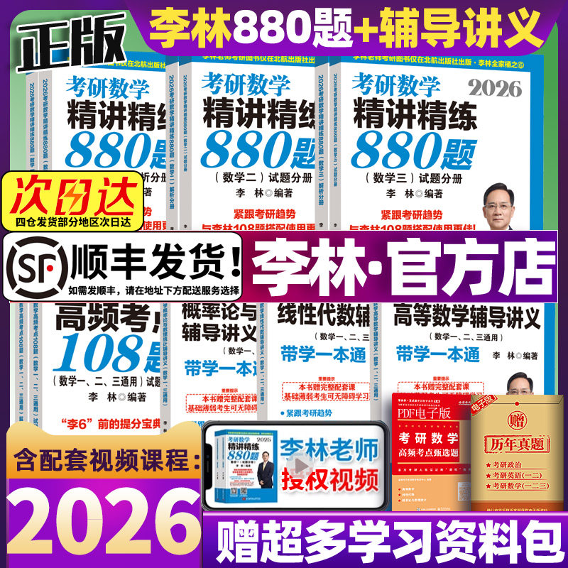 2026 27李林6加4精讲精练880题考研数学一二三精刷500题四六套卷做题本2026预测6套卷4高等数学108题线性代数概率辅导讲义