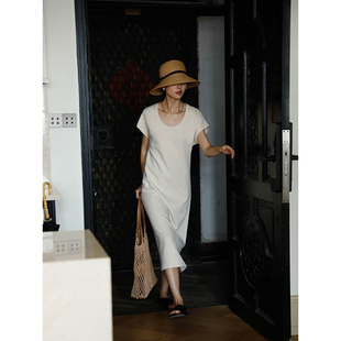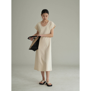 中长款 轻简慵懒U领短袖 T恤连衣裙宽松休闲长裙子女 到手159元