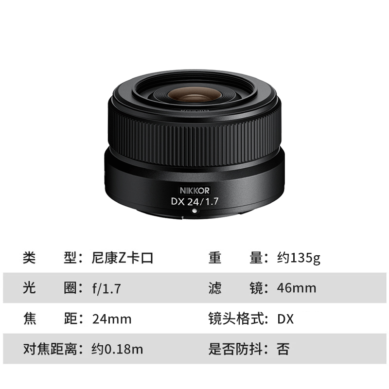 24mm 1.7 尼康尼克尔 定焦微单镜头大光圈 DX格式