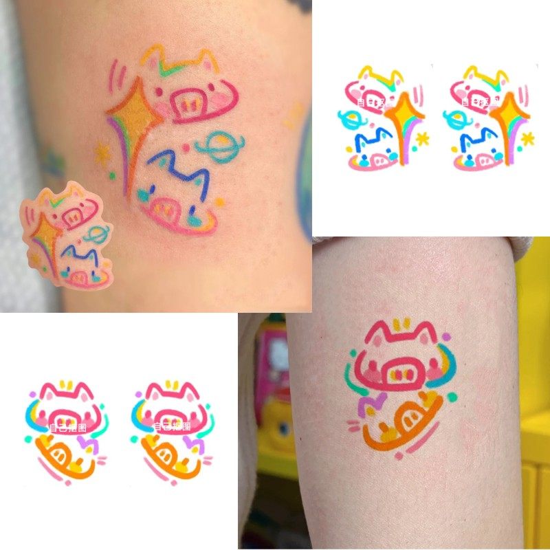 可爱 线条卡通猪猪纹身贴蜡笔小猪彩色小清晰纹身贴防水持久男女