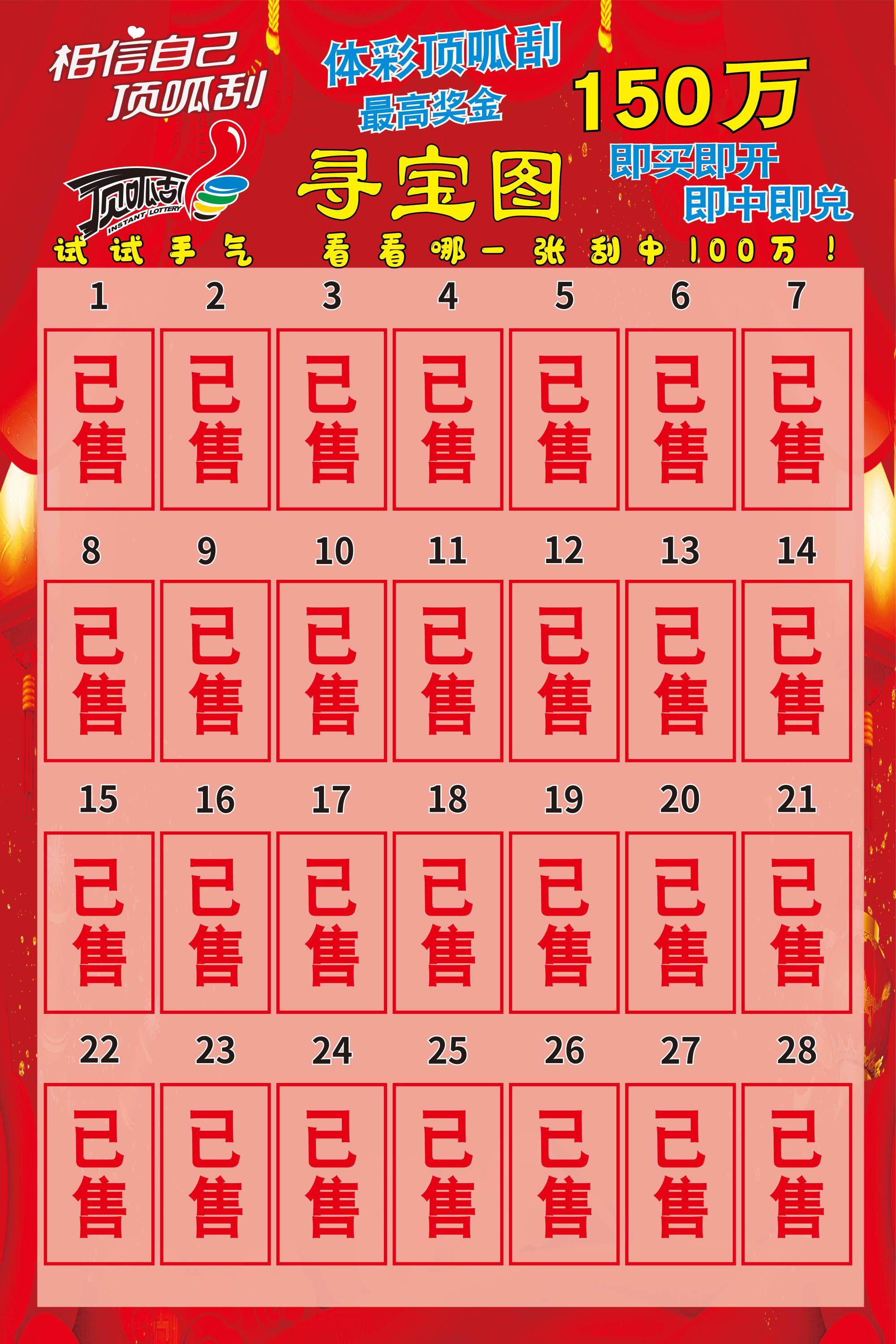 体育彩票体彩顶呱刮刮奖墙即开票展示袋寻宝图寻宝墙藏宝图海报