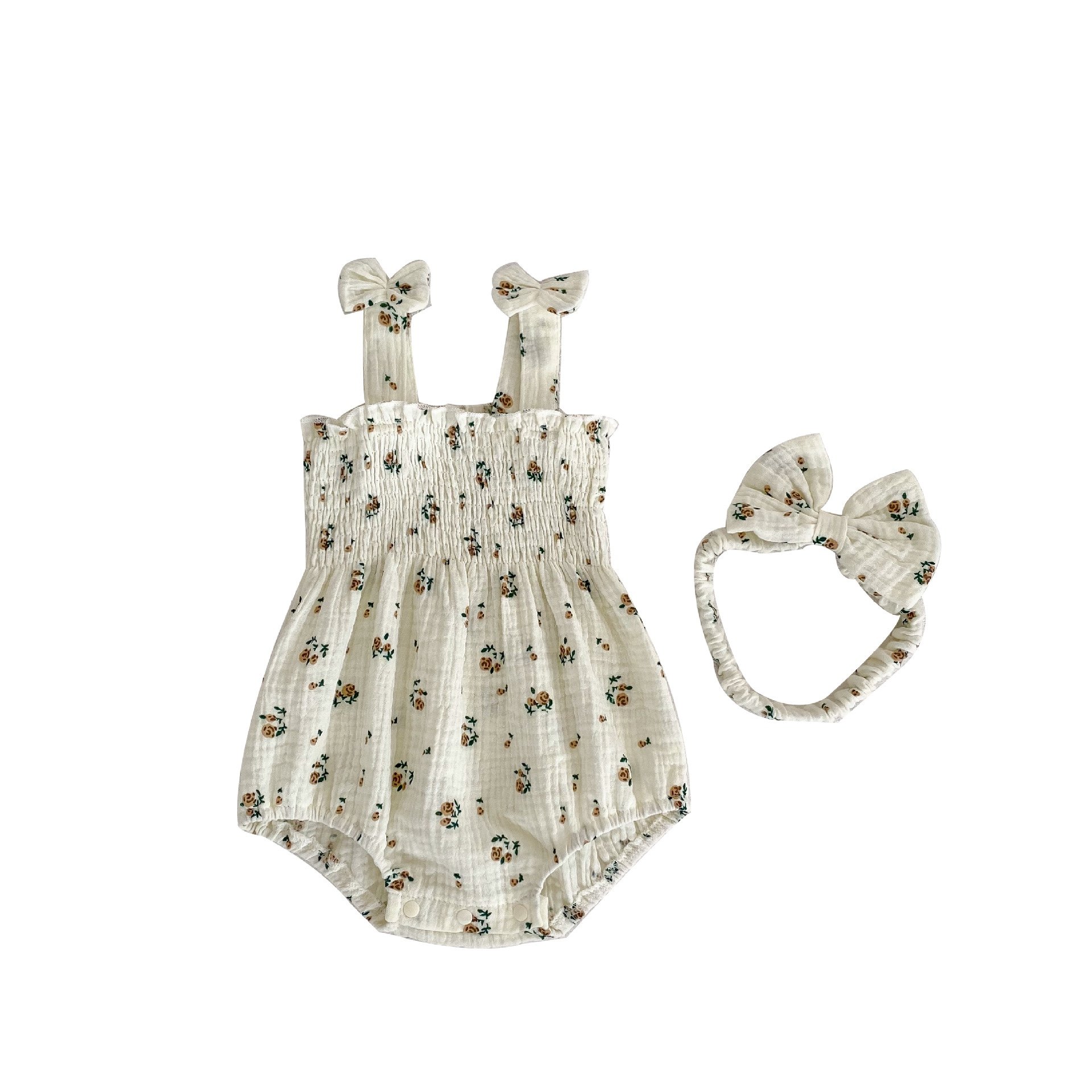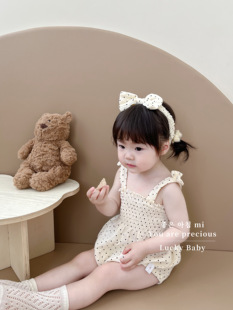 夏天婴儿包屁衣女宝宝蝴蝶结背带哈衣洋气小碎花无袖 连体衣爬爬服