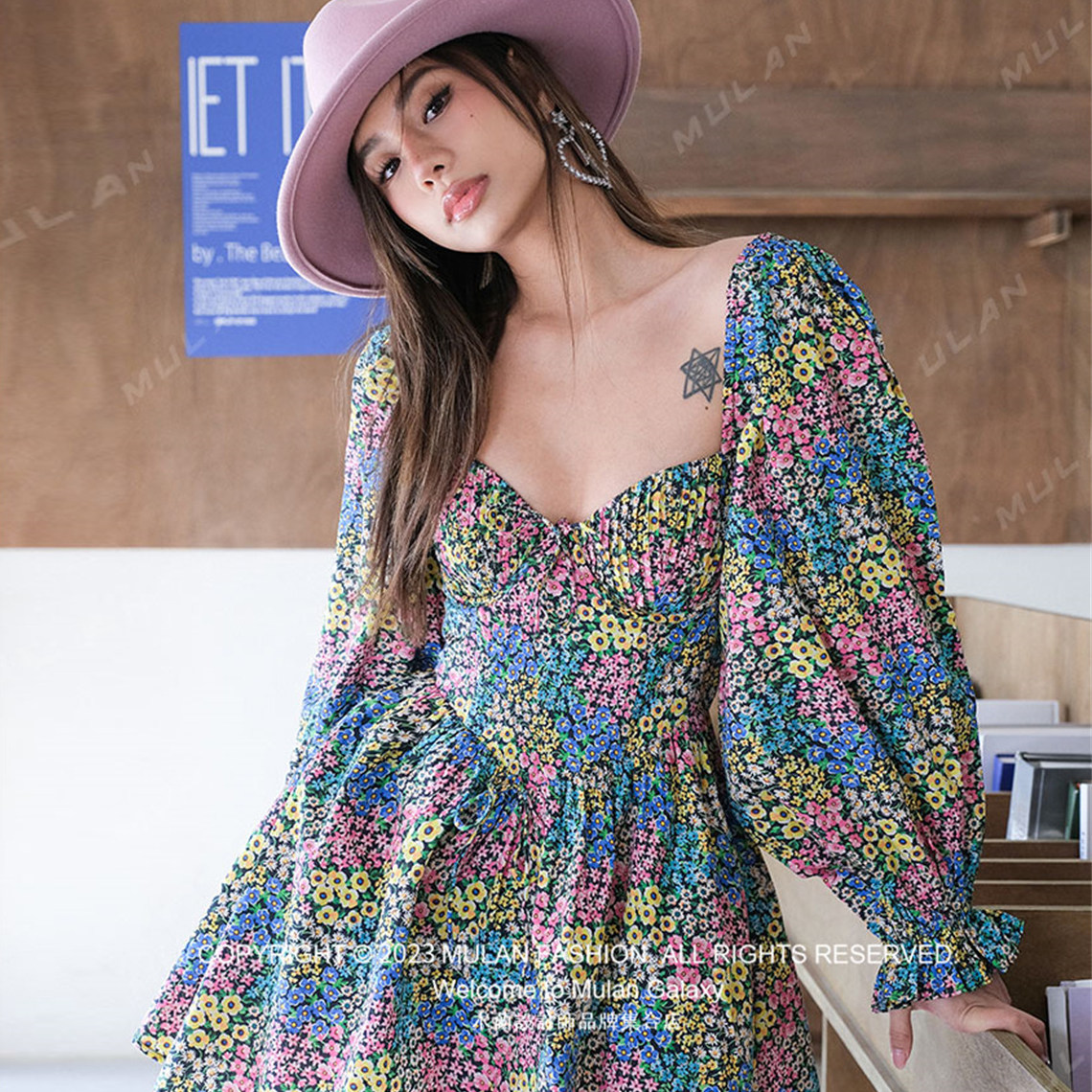 朗姿莱茵福莱尔珠饰手工织带蝴蝶结富家千金法式 连衣裙秋 温柔长袖