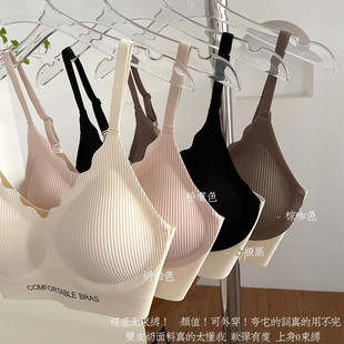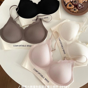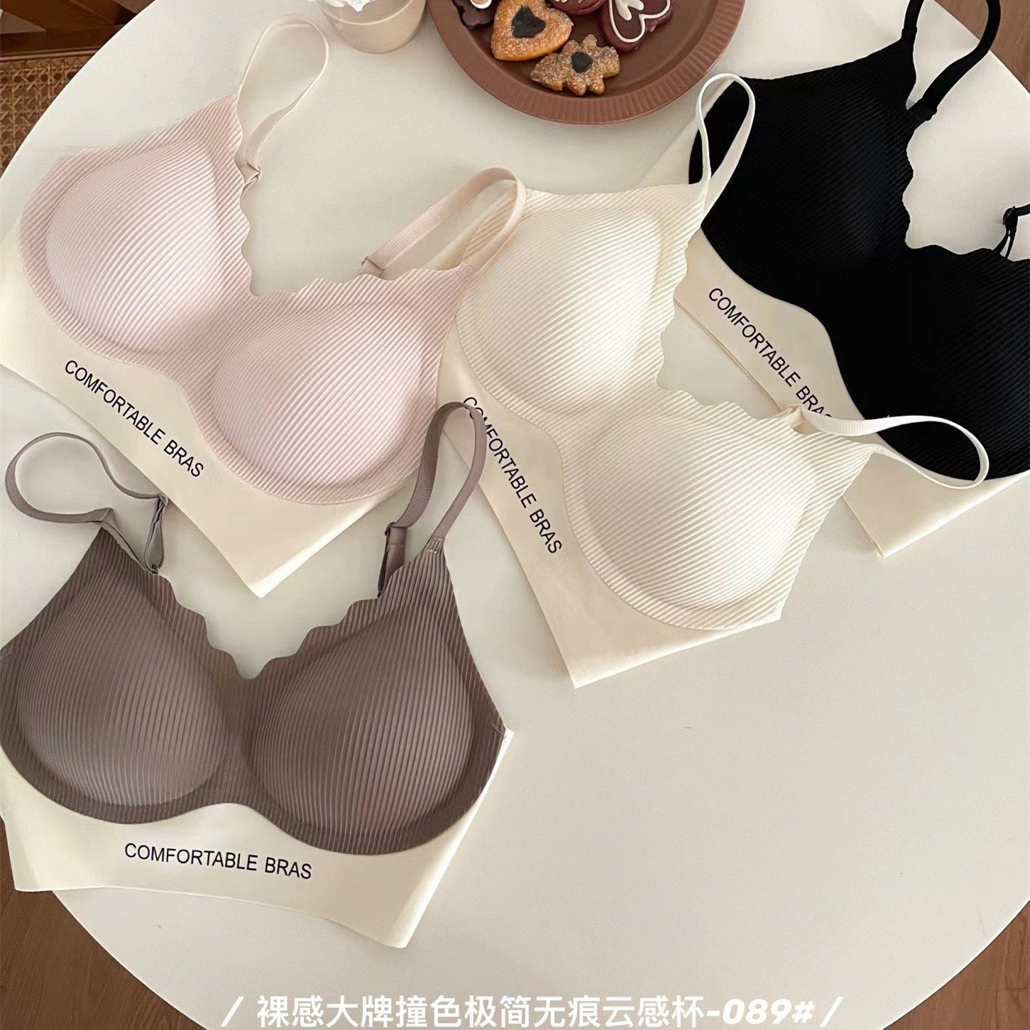 裸感撞色极简无痕云感杯089运动背心式 女士聚拢文胸大胸显小内衣